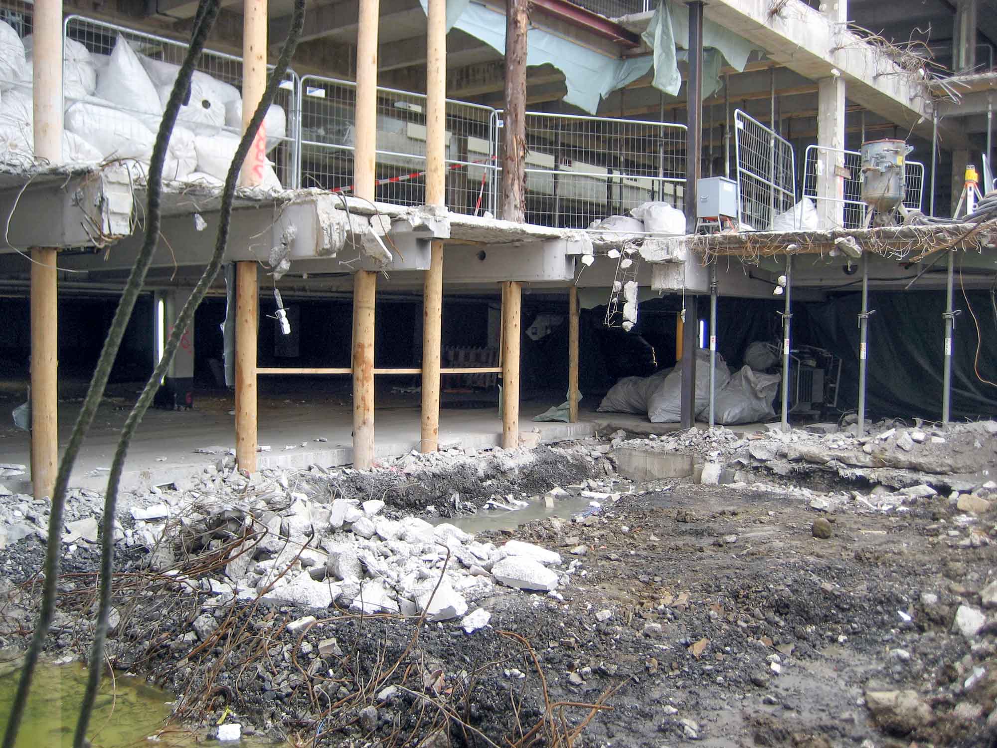 Die vorhandene Gründung wurde für die neue Konstruktion genutzt, wo diese nicht ausreichte bzw. nicht vorhanden war, erfolgte diese auf neuen Fundamenten.