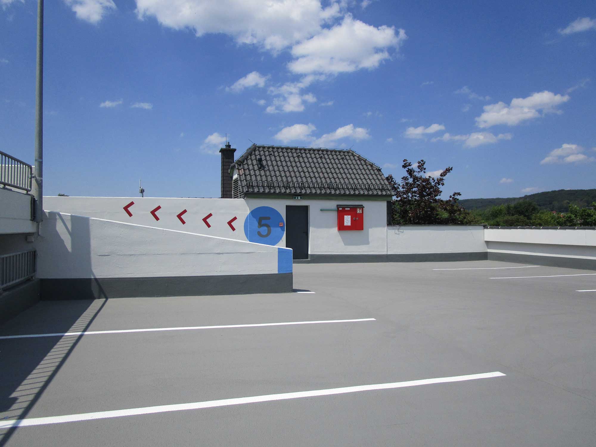 Das Parkhaus aus dem Jahre 1987 sollte aufgrund diverser Schäden saniert werden. Die Betoninstandsetzungsarbeiten wurden auf zwei Bauabschnitte aufgeteilt, so wurde die Nutzung während der Baumaßnahmen sichergestellt.