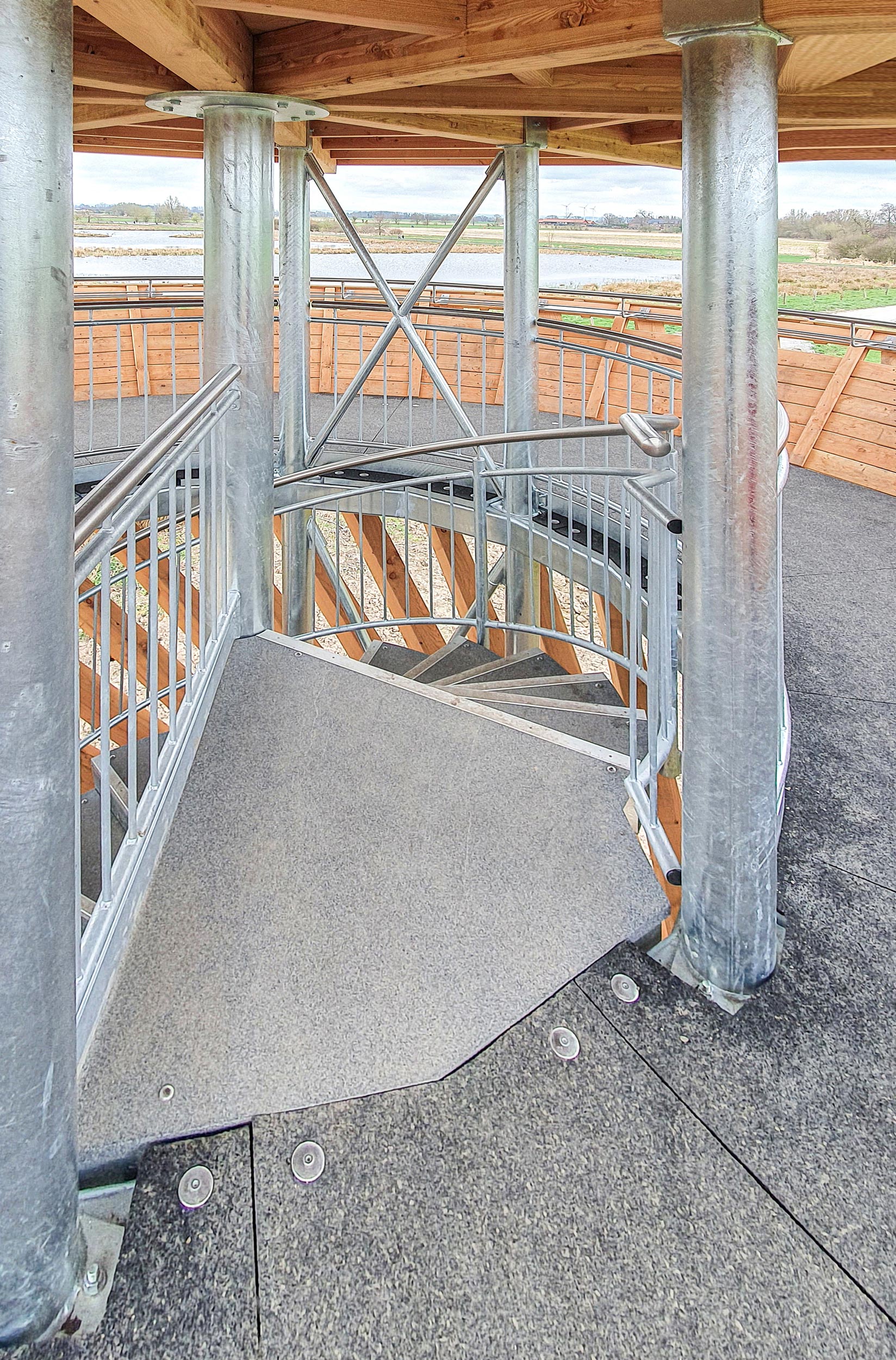 Die Gemeinde Bad Sassendorf erbaute im Ortsteil Ostinghausen eine insgesamt etwa 8,00 m hohe Aussichtsplattform mit Überdachung. Das Haupttragwerk wurde als Stahlkonstruktion errichtet, das Dach und die Bekleidung sind in Holzbauweise ausgeführt. Die Gründung erfolgte über eine kreisrunde Sohlplatte aus Stahlbeton. Zur Aussteifung wurden in vertikaler Richtung zwischen den Hauptstützen Kreuzverbände aus Rohren angeordnet.