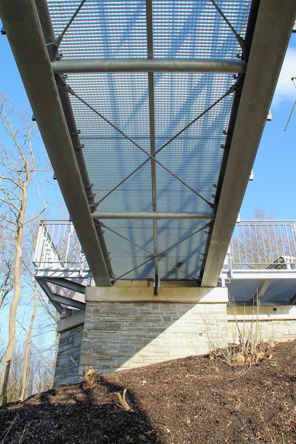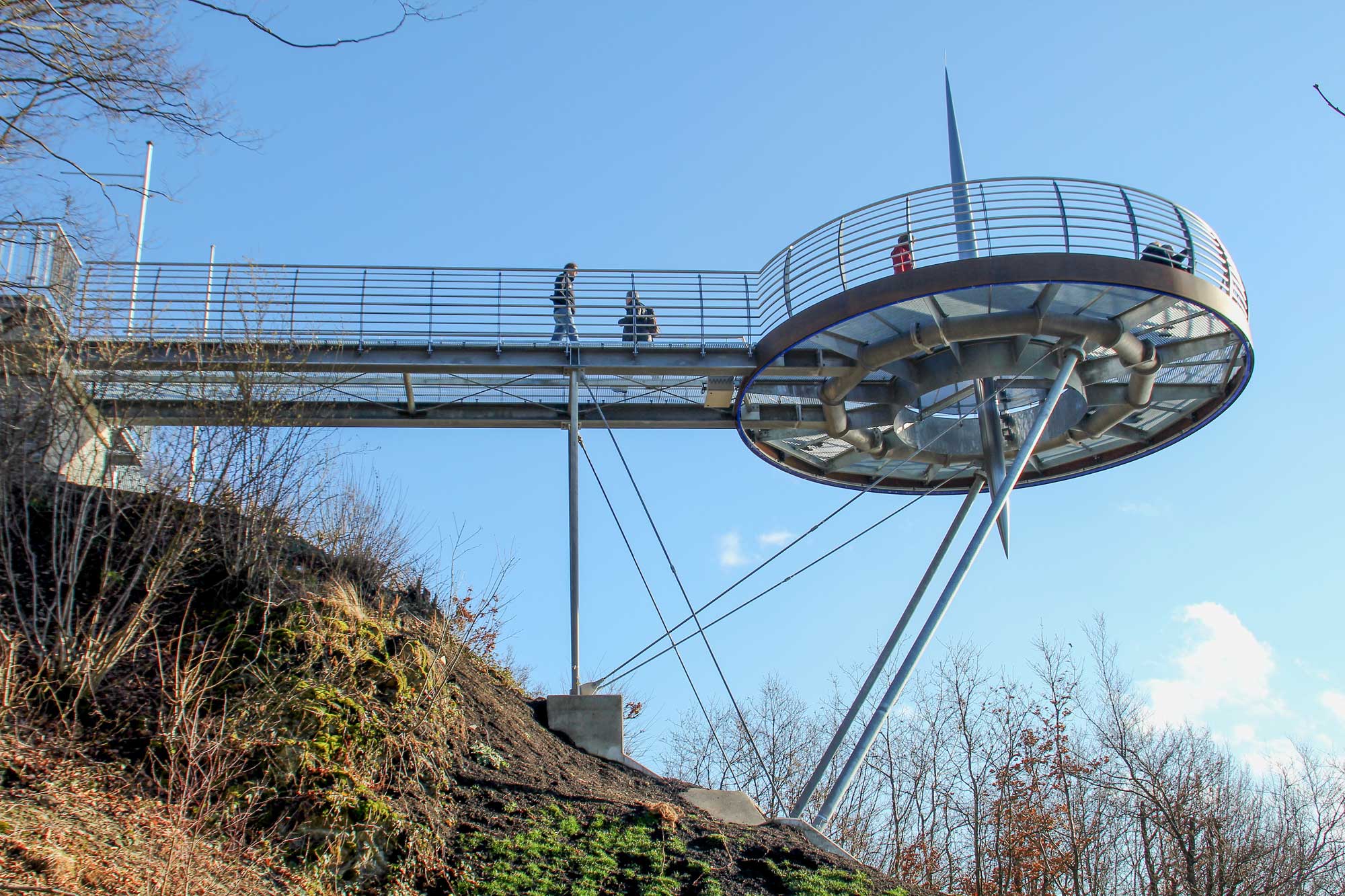 Die Konstruktion besteht aus einem Zugangssteg, der in einer runden Aussichtsplattform mündet und wurde als verzinkte Stahlkonstruktion mit einem Laufbelag aus Gitterrosten gefertigt. Steg und Plattform sind auf Einzelfundamenten aufgeständert. Die Aussteifung erfolgte über Horizontalverbände sowie über die biegesteif angebundenen Plattformstützen und eine seitliche Abspannung der Stegstützen. Die Zuglasten wurden mit Dauerankern in den Baugrund eingeleitet und sind dort verankert.