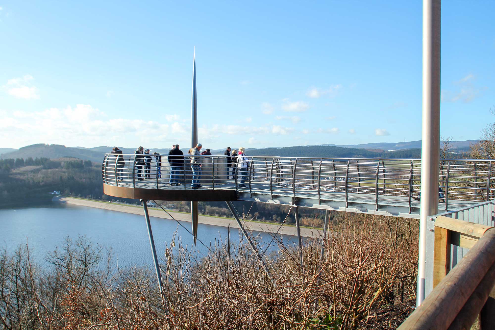 Die Aussichtsplattform an der Waldenburger Bucht oberhalb des Bigge Stausees wurde 2012 errichtet und ist seitdem ein beliebter Anlaufpunkt.