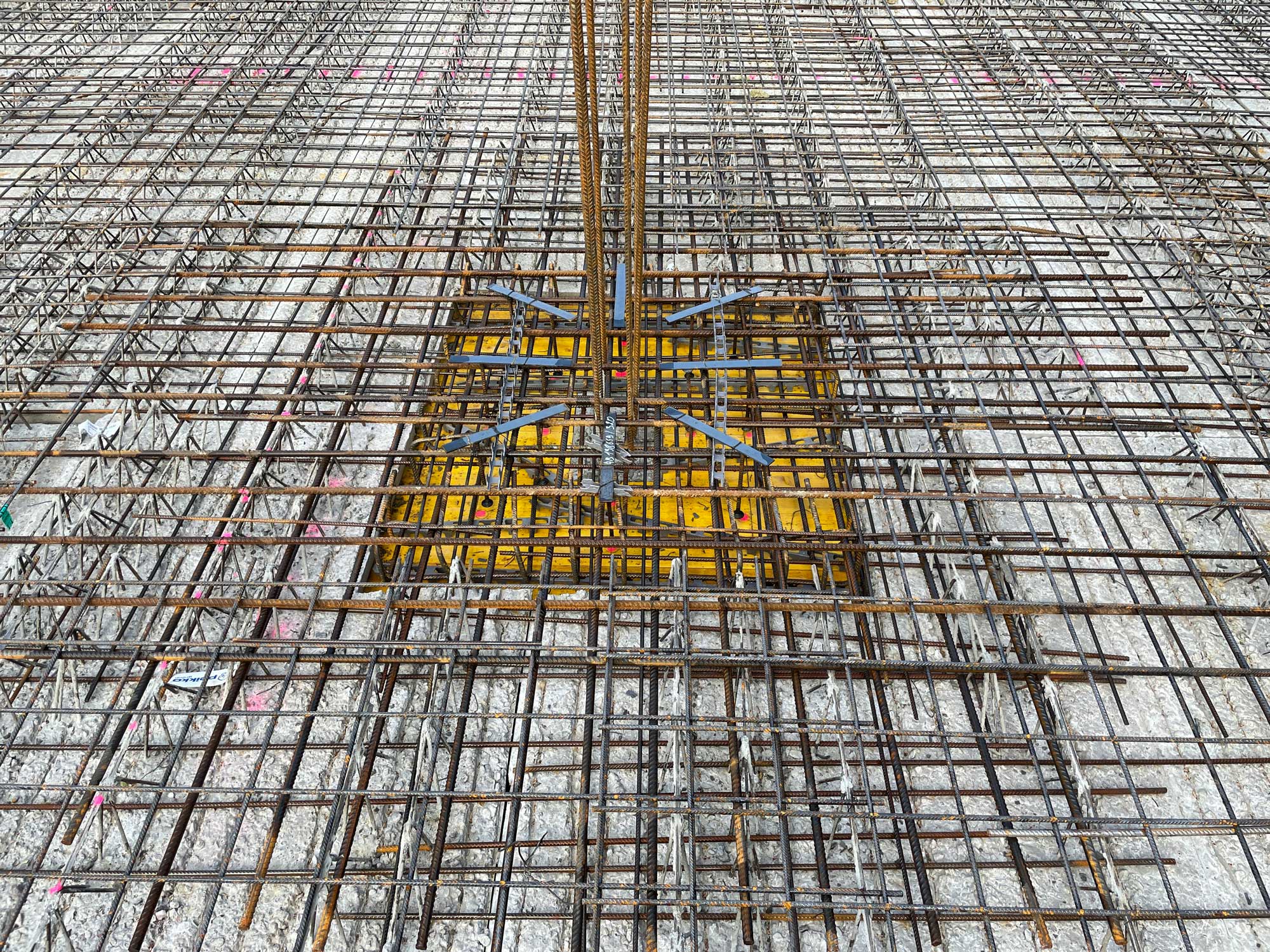 An der Südseite wurde eine Fluchttreppe in Stahlbauweise errichtet. Die Aussteifung erfolgte durch Kreuzverbände in den Podest Bereichen sowie horizontal kraftschlüssige Anbindungen an den Massivbau.